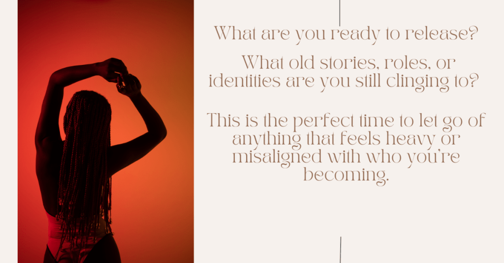 This process of letting go isnât just mental or emotionalâitâs profoundly physical. Our bodies carry the imprints of our stories, identities, childhood traumas, societal or familial judgments, and the remnants of toxic relationships, often without our conscious awareness. Thatâs why this season offers a powerful invitation to tune into our feminine somatic wisdom, to gently explore where we may be holding onto tension or old patterns within our body, and to lovingly release them.